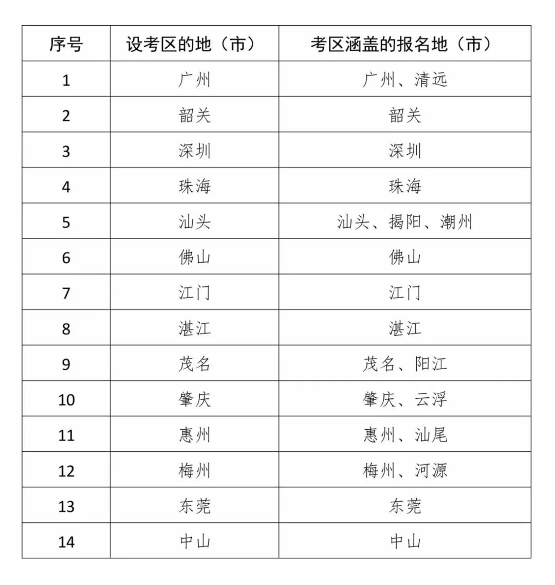 2019年广东省国家统一法律职业资格考试主观题计算机化考试拟设置14个考区,具体如下: