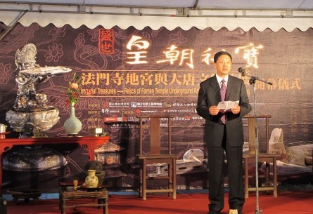 從陝西省文物局獲悉,備受海內外各界人士關注的《法門寺地宮與唐代文物大展》於今日在國立歷史博物館隆重開幕,陝西省文物局代表團和「立法院長」王金平等海內外400人余出席了開幕式。